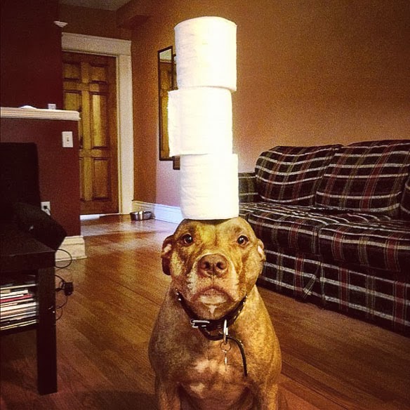 Back in 2009, Jen Gillen, of Toronto, Canada adopted a shelter dog named Scout, a Pitbull who can now balance items such as laptops, asparagus, sushi to humongous dog bones on top of his head. “It all started with the suggestion from a friend to put a roll of toilet paper on his head - which was surprisingly easy - so it snowballed from there,” says Gillen according to the Daily Mail. “She says that “Food items are the easiest because he never gets people food, although there are no shortage of his own treats after each picture.” The hardest photo to capture was a large raw hide bone since Scout knew it was for him.